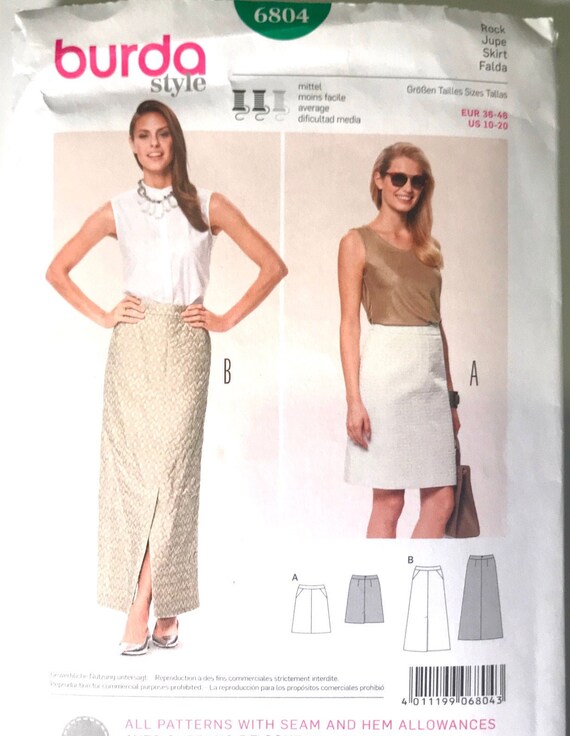 Burda 6804 Skirt Pattern Maxi Skirt Pattern Knee Length Etsy Canada